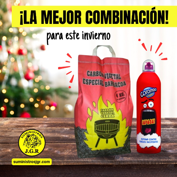¡Prepara tus barbacoas navideñas sin preocupaciones! Con nuestro Carbón Vegetal Especial para Barbacoa, disfrutarás de un encendido rápido y una brasa perfecta para tus reuniones. Y para mayor tranquilidad, acompáñalo con Caramba Apaga Fuegos, la espuma que actúa al instante contra pequeños incendios, garantizando tu seguridad en cualquier momento.