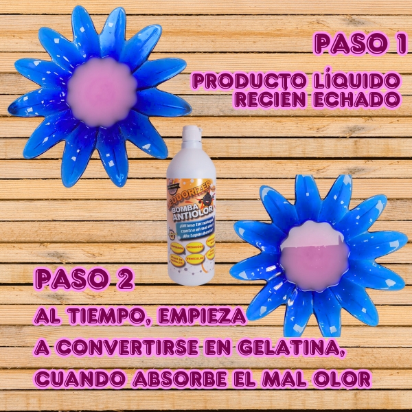 Al aplicarlo pasado unos días, su fórmula líquida se transforma en una gelatina sólida, lo que evita derrames y prolonga su acción desodorizante por semanas, lo que le permite actuar por más tiempo sin evaporarse ni requerir recargas constantes.