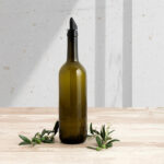 Es una original aceitera con forma de botella de vino, fabricada en vidrio con un tapón vertedor diseñado especialmente para el aceite.