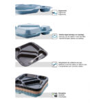 Sus asidores laterales facilitan el agarre de la bandeja y su transporte incluso para los usuarios de menor edad. Además, se puede tapar la bandeja que contiene los alimentos con solo girar otra bandeja vacía y posicionándola de tapa.