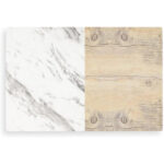 Su diseño combina un acabado imitación mármol y madera, creando un contraste moderno y sofisticado que encaja en cualquier cocina, comedor o presentación de alimentos.