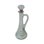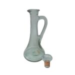 Botella de cristal reciclado transparente modelo lugano con vertedor, agarre de asa, tapón de bola cristal y corcho, indicada especialmente para el uso de licores.