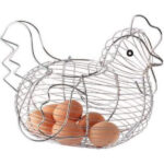 CESTA HUEVERA ACERO CROMADO CON ASAS FORMA GALLINA