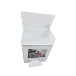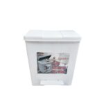 Cubo compresero pedal fabricado en plástico blanco resistente y de considerable espesor.