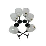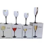 Cristalería de 48 piezas en cristal con pie negro.