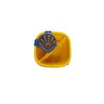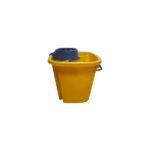 Cubo de fregona con dos compartimentos, uno para agua limpia y otro para agua sucia y asa. Color amarillo.