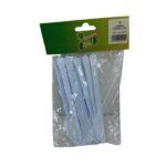Consiste en un paquete de 18 cuchillos de plástico en color blanco de usar y tirar.