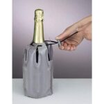 Enfría en pocos minutos y dura horas. Se adapta a la mayoría de las botellas.