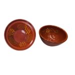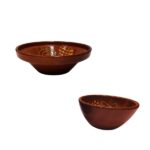 Juego de 1 lebrillo y 1 bols marrón vitrificados de barro hecho y decorado a mano, ideal para exponer sus alimentos de manera tradicional.