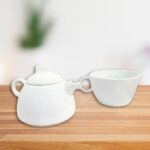 Juego de té individiual compuesto por tetera y taza.