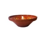 Es un complemento de menaje realizado en barro y posteriormente lo sometemos a un tratamiento de vidriado. Dicho tratamiento aporta el particular brillo y resistencia propios de este tipo de cerámica.