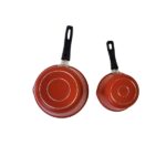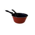Lote de 2 cazos cónicos aluminio con vertedor antiadherentes color rojo.
