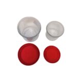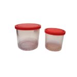 Lote de 2 tarros en cristal de vidrio transparente frigoset con tapa de plástico flexible.