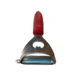 Pelador de tomate en «T» dentado de 17,5 cm de largo fabricado en acero inoxidable 18/10 de alta calidad y resistencia a la corrosión con mango rojo de ABS.