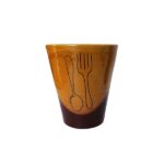 Portacubiertos cónico en material barro miel esmaltado bicolor amarillo y marrón, ideal para decorar tu cocina a la vez que es practico para ubicar los cubiertos en tu encimera.