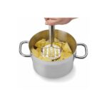 Su diseño ergonómico y su mango de 11.8 cm de longitud facilitan su uso, permitiendo una presión suave y eficiente para obtener puré de patatas de forma rápida y sencilla.