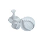 Juego de 3 cortadores de fondant con expulsor con la forma de hoja de rosa con detalle de sus nervios y acabados.