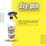 OXY-GEN es una solución higienizante formulada con peróxido de hidrógeno y cloruro de benzalconio y estabilizantes, neutro y listo para usar. Es apto para usar pulverizado y mediante nebulizadores o rociadores.
