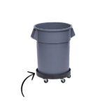 El transportador universal de contenedores Rubbermaid Commercial transporta rápida y fácilmente contenedores de basura de hasta 227 kg de peso en la empresa.